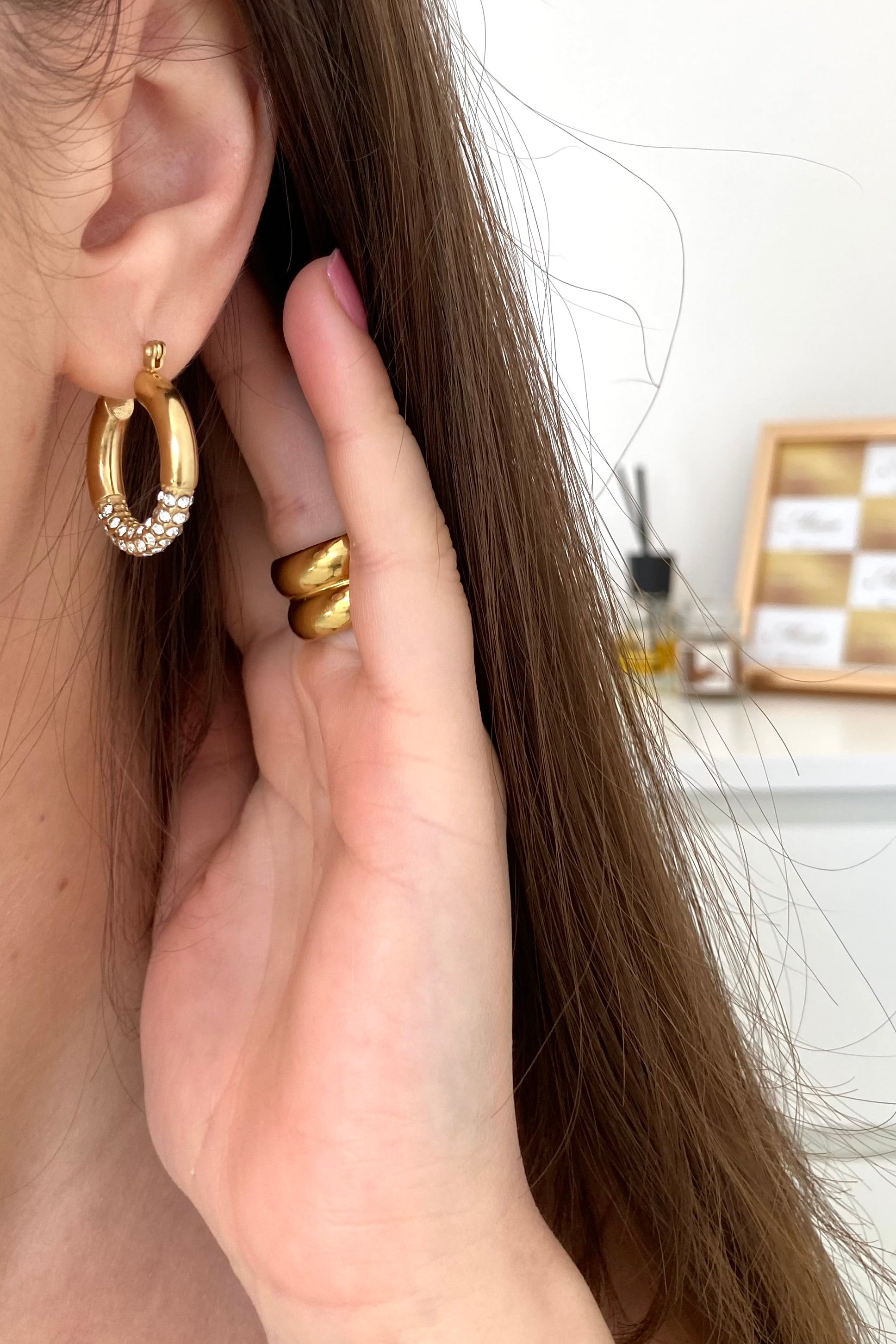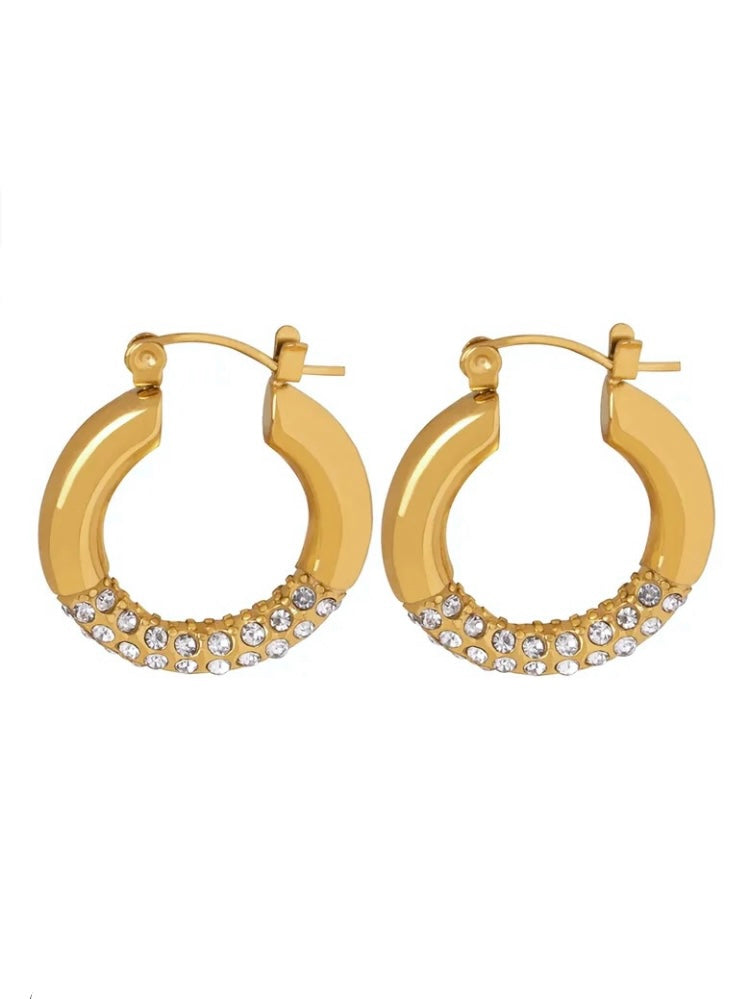 Gli orecchini Giselle uniscono la classica forma a cerchio a un tocco di brillantezza moderna grazie agli zirconi posizionati al centro.