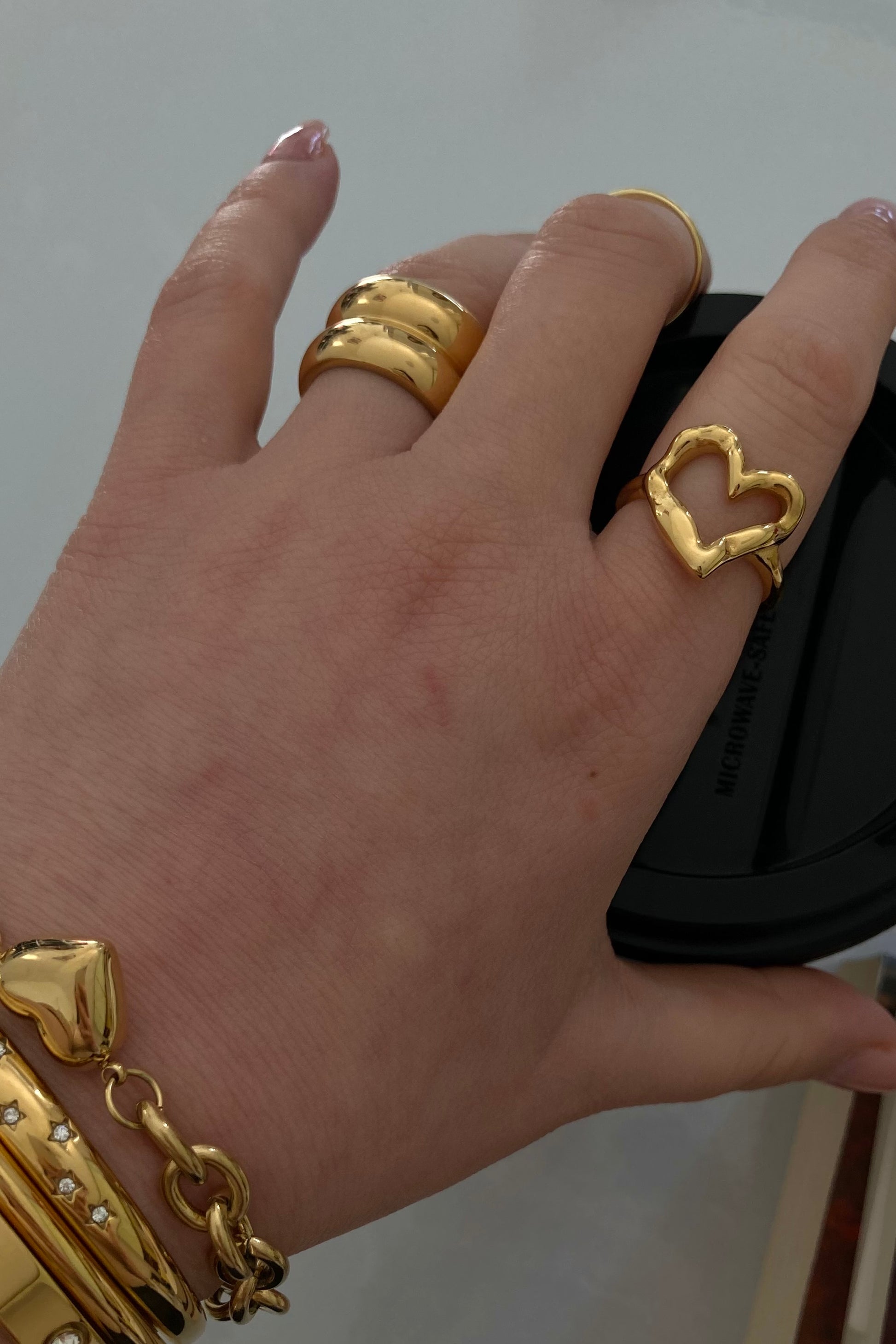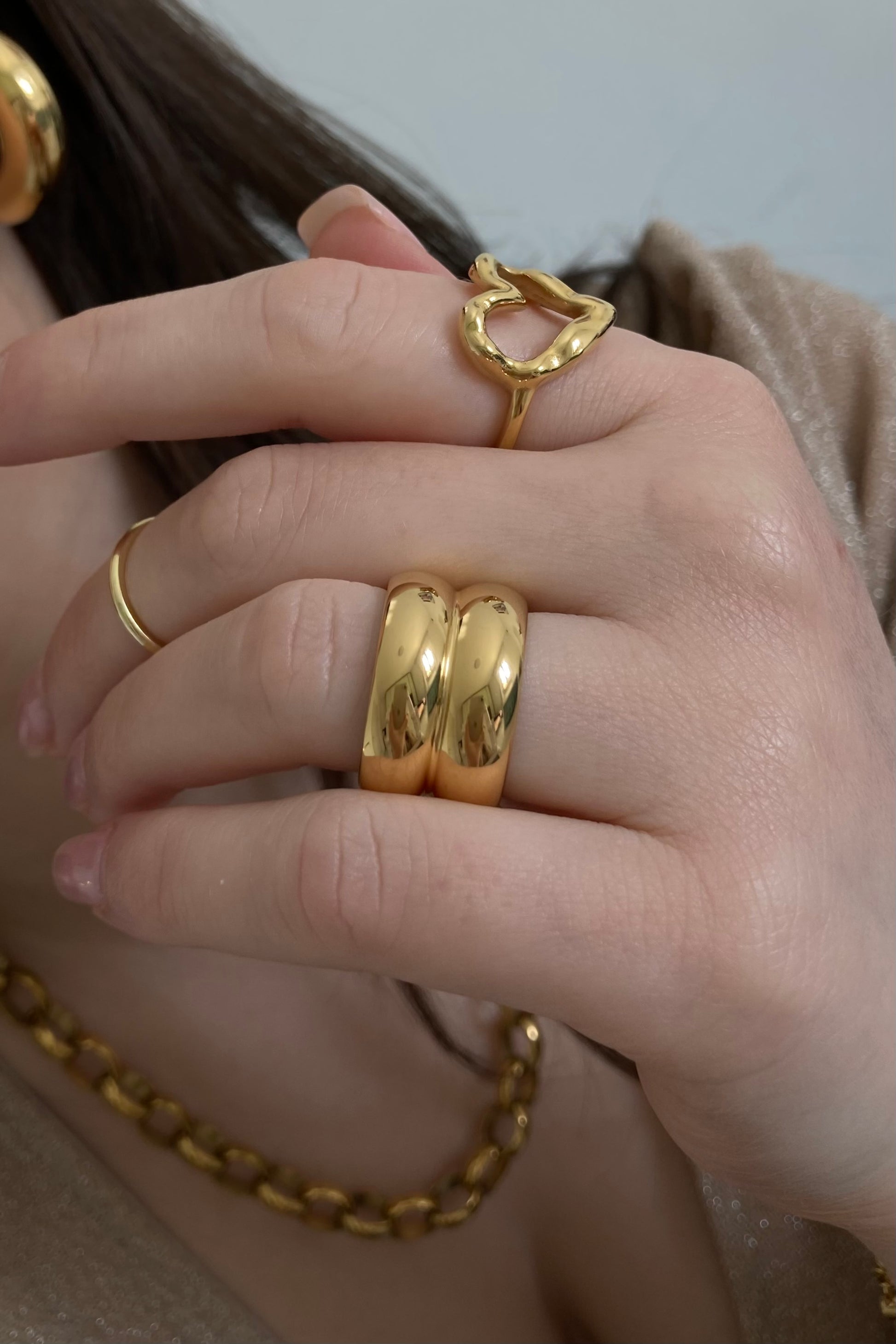 Un design audace e contemporaneo, impreziosito da una finitura dorata brillante che esalta ogni movimento della mano.