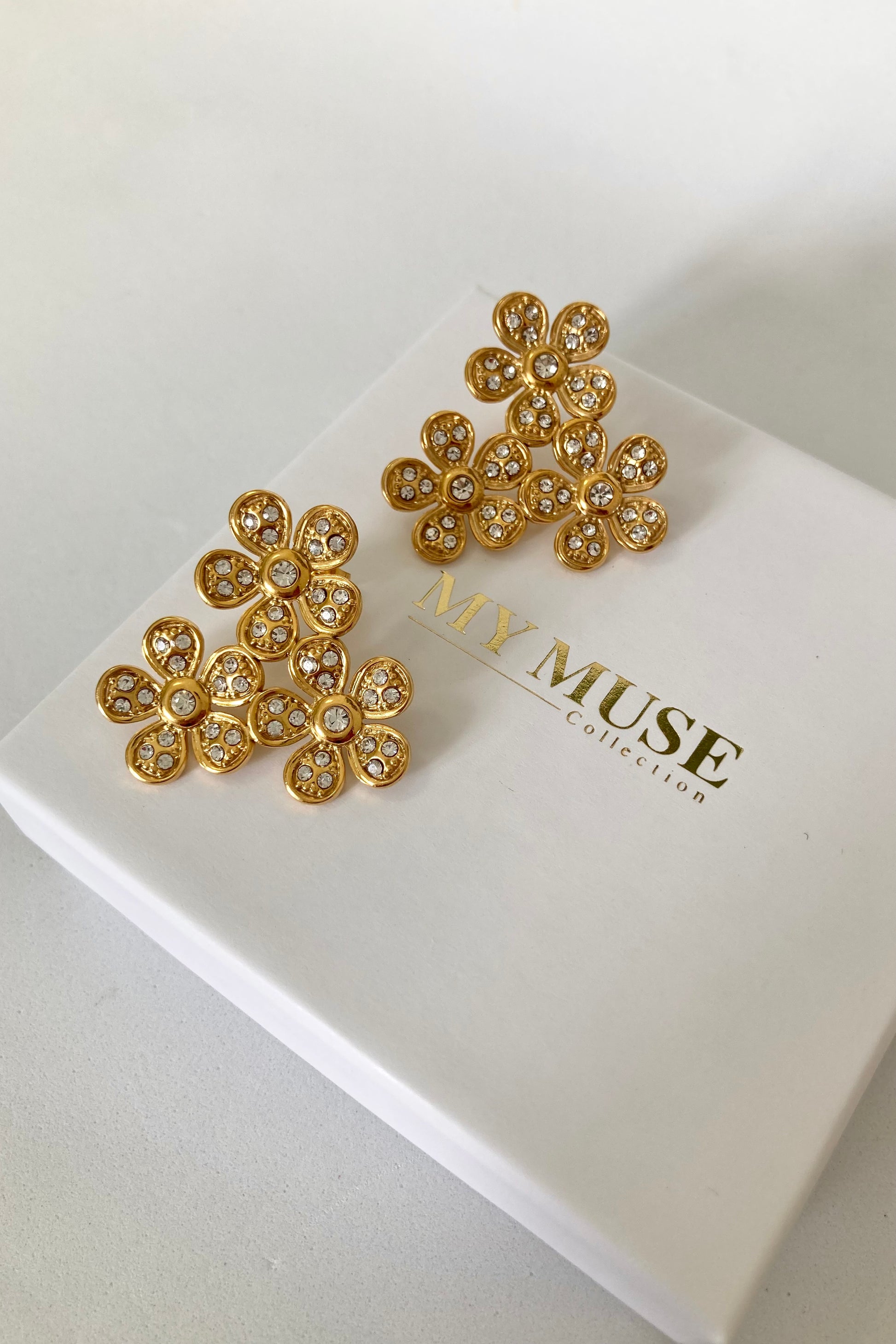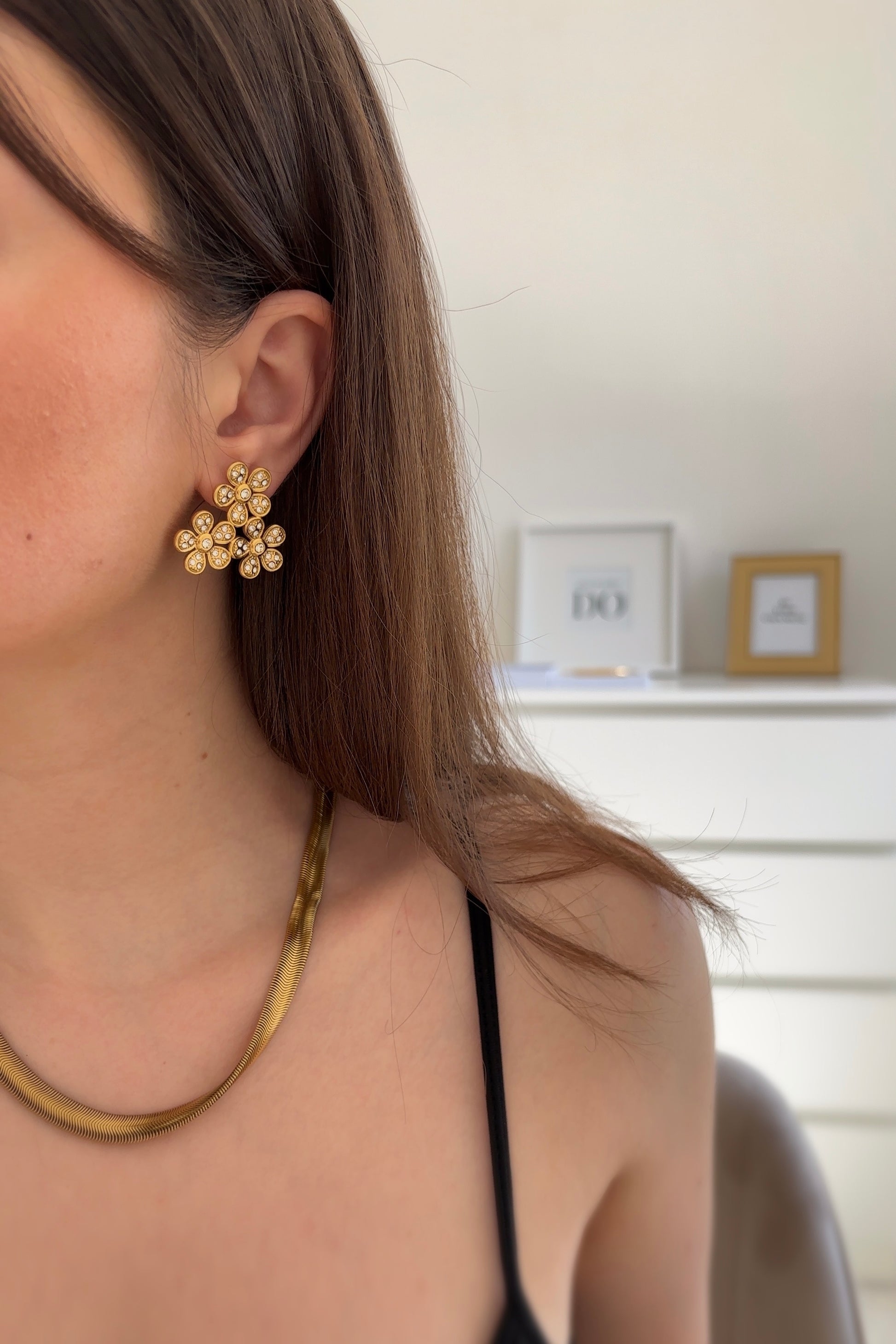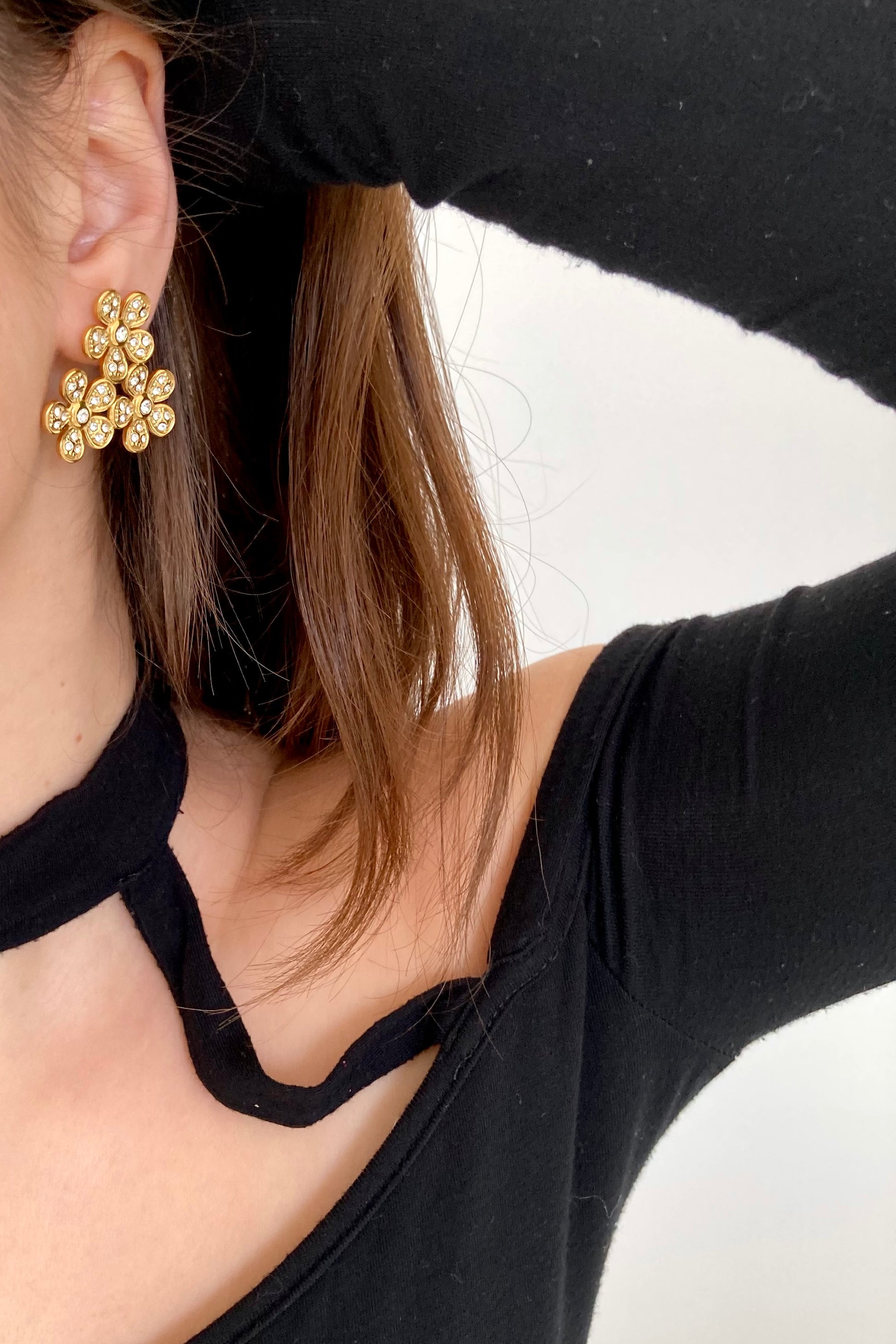 Gli orecchini Sophie illuminano il volto con grazia dato il loro design floreale e le pietre brillanti incastonate. Ogni petalo racconta una storia di dolcezza e forza, per uno stile che non passa inosservato.
